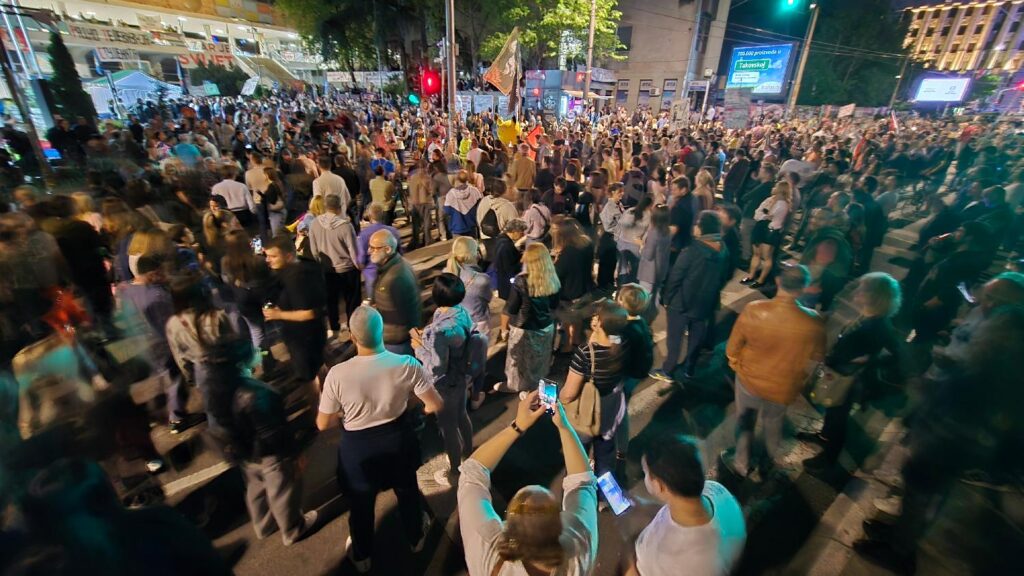 Šesta noć studentske blokade zgrade Radio televizije Srbije (RTS) u Takovskoj ulici, u centru Beograda, protiče u prisustvu do sada najvećeg broja građana kojih je oko 23.00 bilo više od petnaest hiljada, a očekuje se da će posle vaskršnje liturgije, iza ponoći, gužva biti još veća.