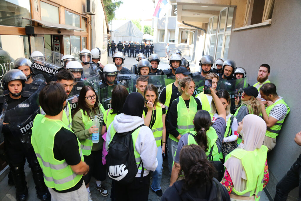 „Ljudi su na ulici, iscrpljeni od sunca i manjka sna. Načini protesta su, takođe, na rubu iscrpljenosti. Zbog navedenog, studenti su odlučili da naprave korak napred, da organizuju blokadu ispred Osnovnog suda u Novom Pazaru“, naveli su studenti za N1.