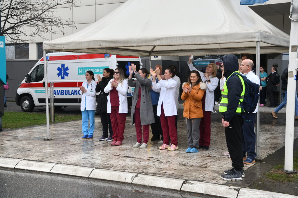 Deo zaposlenih u Domu zdravlja Zemun odazvao se juče generalnom štrajku, uz minimum procesa rada. Takođe i zaposleni iz bolnice Medigrup, izašli su da pozdrave građane u protestnoj šetnji.