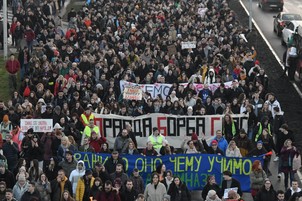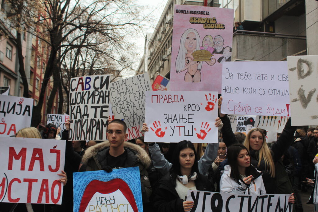 Srbija je stala. Blokirane saobraćajnice, zatvoreni lokali, restorani, kafići, pekare, poslastičarnice, saloni, u školama prazne učionice, a na ulicama probuđeni građani, deca, srednjoškolci, studenti, mame, tate, penzioneri, svi.