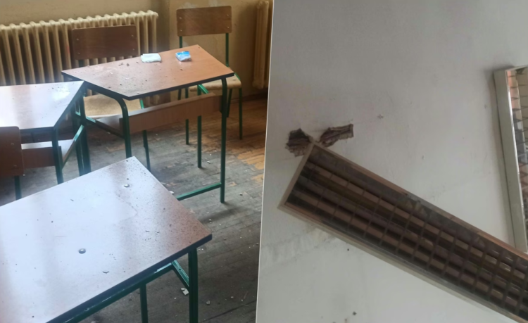 Prašina i delići plafona i kreča su pali po učionici gde se nalazio manji broj učenika, a niko od prisutnih nije poverđen, ali je nastala panika i strah.