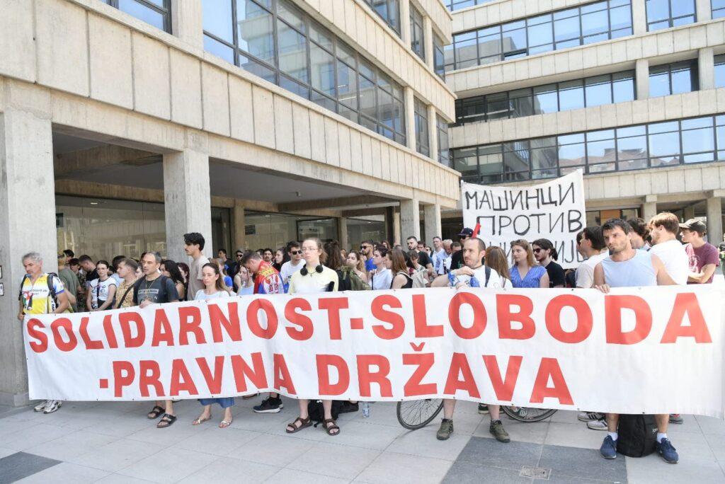 „Bilo je mnogo strašno. U početku sam sve vreme gledao na vrata i čekao da neko upadne, a onda sam čuo pištaljke i trube i bilo je mnogo manje strašno. Hvala vam svima na podršci, hvala vam svima na nenasilnim protestima i pozivam sve da dođu 28. na protest“, rekao je Stefan ispred Palate pravde.