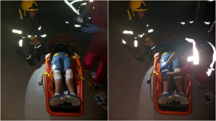Za samo nekoliko minuta stigli su do dečaka, stavili ga u korito, a zatim užem i lestvama spustili na bezbedno i predali lekarskoj ekipi Hitne pomoći.