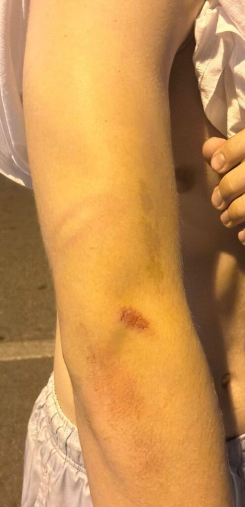 Policajci su počeli da šamaraju i udaraju decu i da im zavrću ruke. Dvojicu od njih, P. L i T. B., odmah su pustili, ali su zadržali dvojicu njihovih drugara, M. P. I G. K., koje su uvukli dublje u prolaz gde se tortura nastavila.