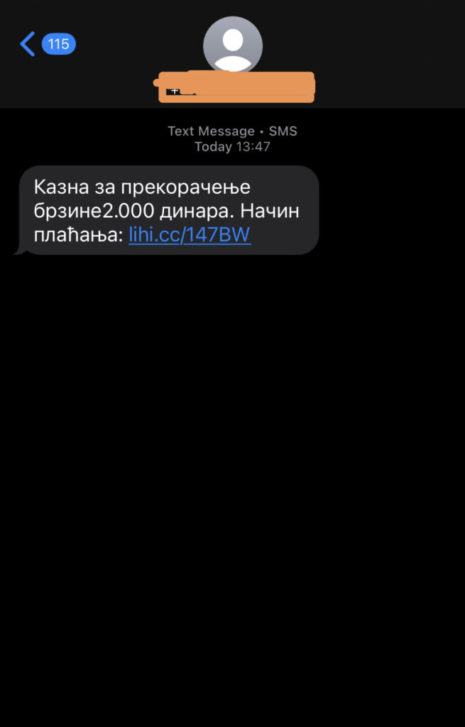 Na brojeve pojedinih korisnika u Srbiji je proteklih dana stigla poruka sa obaveštenjem o neplaćenoj kaznu. Preciznije, u poruci je navedeno da je reč o „neuplaćenoj kaznu“.