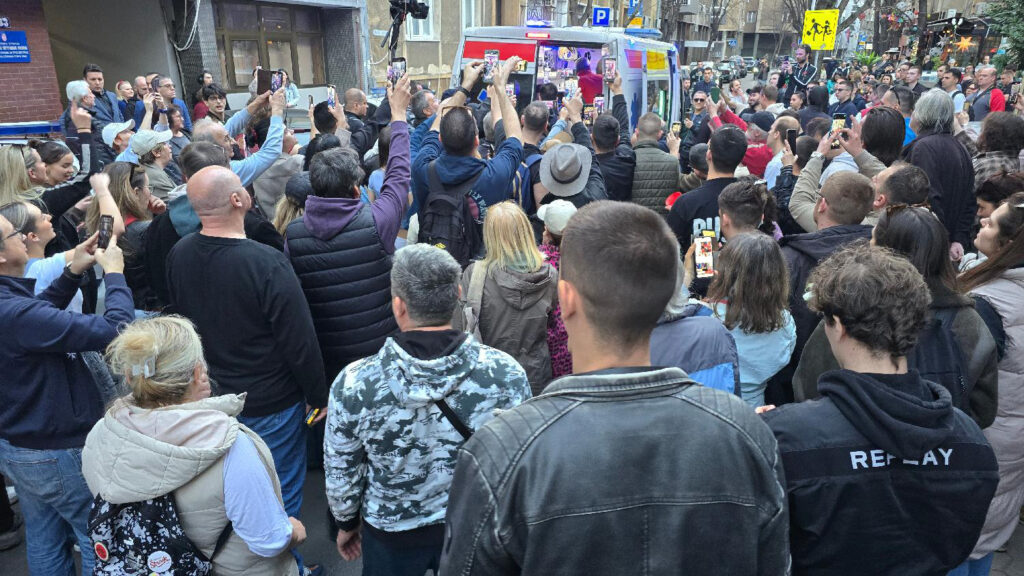Nakon što je Šarović uhapšen, ispred policijske stanice u Majke Jevrosime, okupili su se građani koji su skandirali i zviždali. U jednom trenutku su građani jajima gađali zgradu policije, prenosi N1.