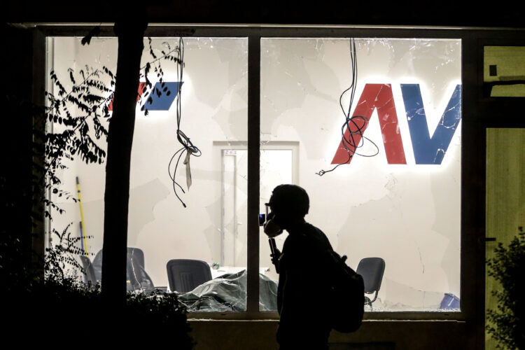 Minsitarstvo unutrašnjih poslova (MUP) danas je saopštilo da je u policija u Beogradu uhapsila dvoje ljudi zbog sumnje da su juče razbili izlog na prostorijama Srpske napredne stranke u Cvijićevoj ulici u Beogradu."Oni se sumnjiče da su 18. avgusta oko 22 časa, tokom održavanja neprijavljenog javnog skupa u Cvijićevoj ulici, kamenicama razbili staklo na prostorijama Srpske napredne stranke", navodi se u saopštenju MUP.
