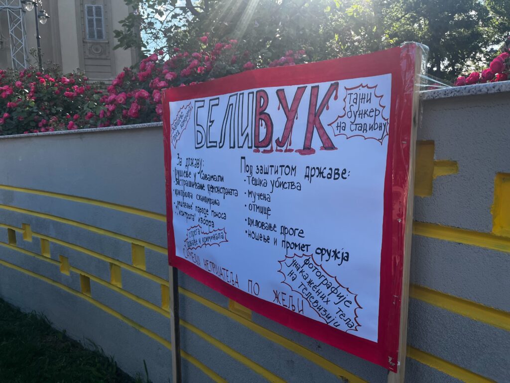 Na Bulevaru Nikole Tesle primećena su vozila Žandarmerije, a okupljeni uzvikuju poruke „ruke su vam krvave“.