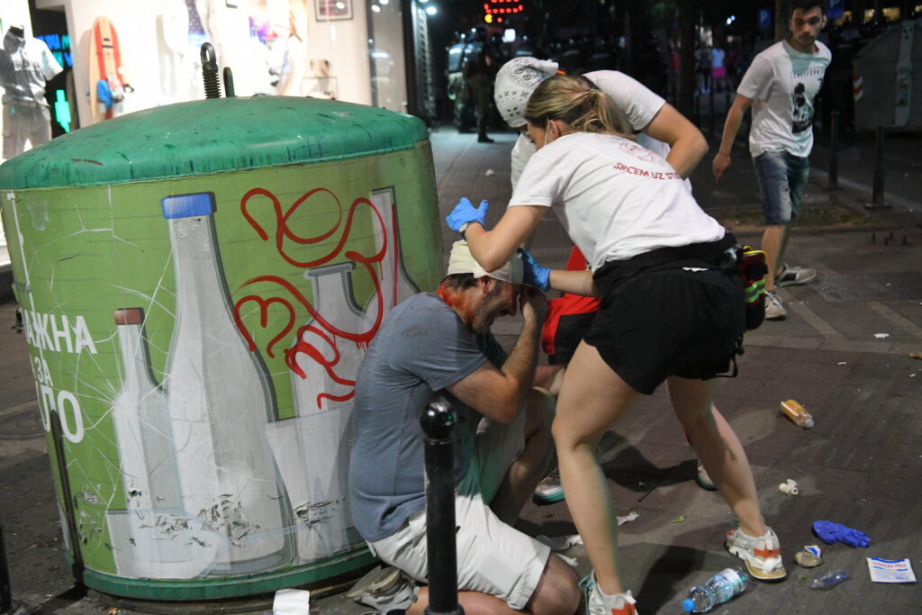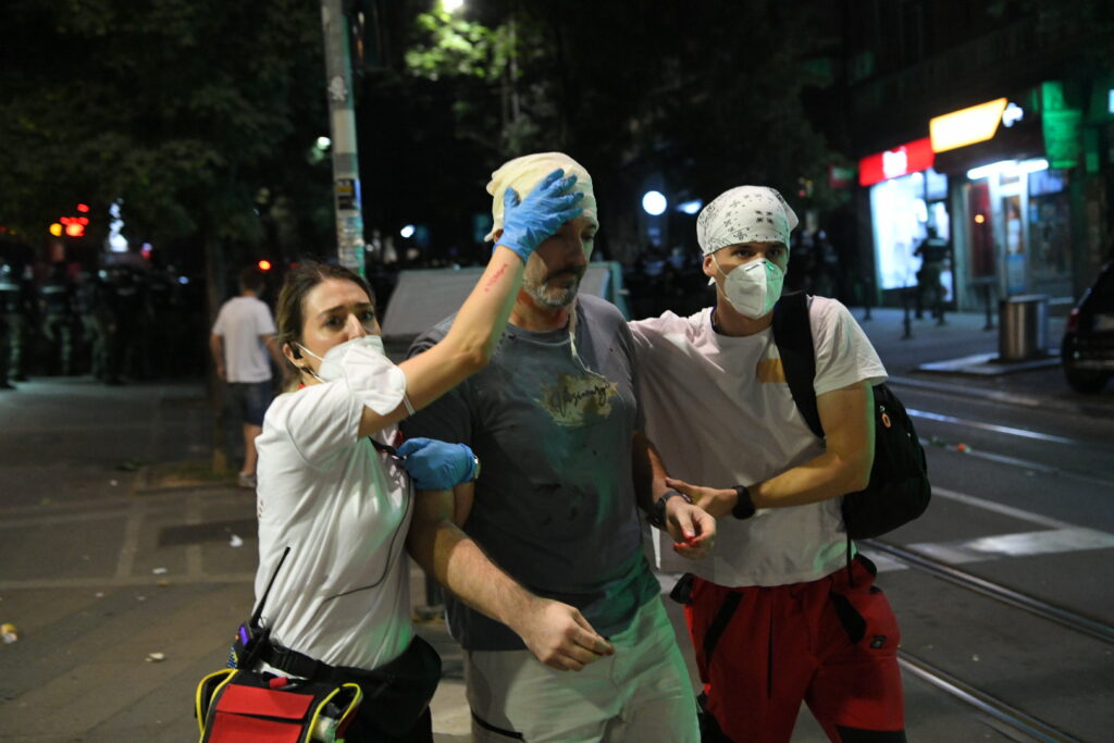 Reporter N1 javio je da su demonstranti propustili kola Hitne pomoći sa ekipom koja je trebelo da pomogne povređenom policajcu. Isto potvrđuje snimak koji je objavljen na društvenim mrežama.