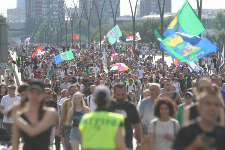 Protesti, koje je predvodio pokret „Studenti u blokadi“, izbili su krajem 2024. godine i od tada su se proširili širom Srbije. Ono što je počelo kao poziv na odgovornost nakon tragičnog urušavanja nadstrešnice železničke pruge u Novom Sadu — u kojem je poginulo 16 ljudi, a drugi su teško povređeni — preraslo je u nacionalni zahtev za odgovornošću, transparentnošću, pravdom i ulaganjem u obrazovanje. Pokret je dostigao vrhunac u martu 2025. godine, kada su se stotine hiljada ljudi okupile u Beogradu u snažnom demonstraciji građanskog jedinstva, rekli su stručnjaci.