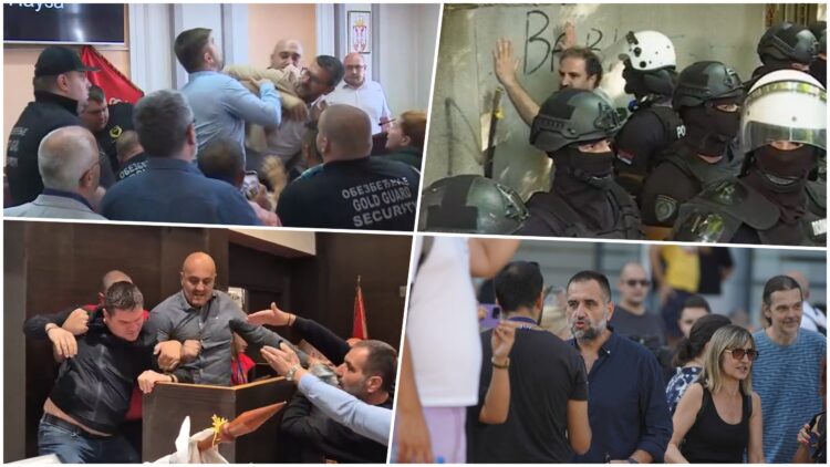 Ovo nije prvi put. I u maju ove godine došlo je do koškanja i guranja sa obezbeđenjem, koje je stalo na vrata sale i sprečavalo opozicione odbornike da uđu unutra. Tada je jedan radnik obezbeđenja doslovno davio odbornika Lokalnog fronta Vladana Slavkovića. Nakon toga, Slavković i Ivan Matović, predstavnik Udruženja starosedeoca Kraljeva, privedeni su zbog nasilničkog ponašanja.