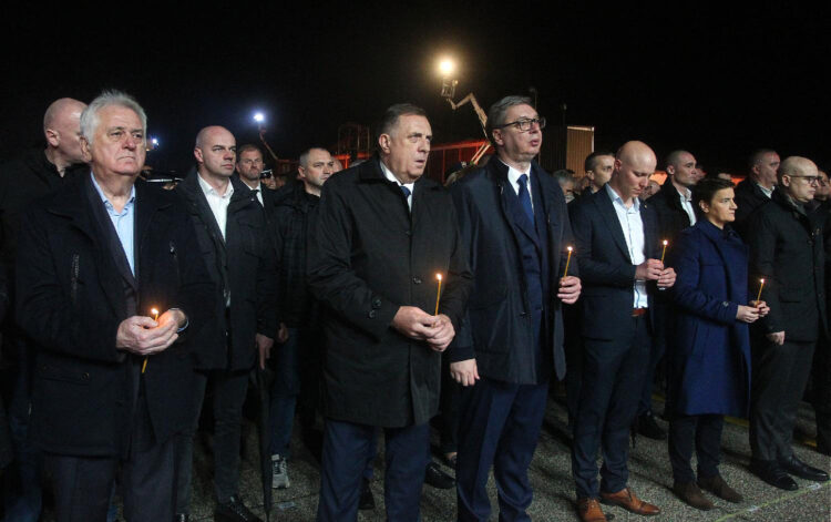 Vučić je na aerodromu „Pukovnik-pilot Milenko Pavlović“ u Batajnici, u prisustvu državnog vrha Srbije i čelnika Repblike Srpske, rekao da je „posle svih bombi i posle marioneta koje su kasnije prigrabile vlast da pljačkaju i da budu nečije sluge“, Srbija ponovo zemlja „koju i te nesreće jačaju“.