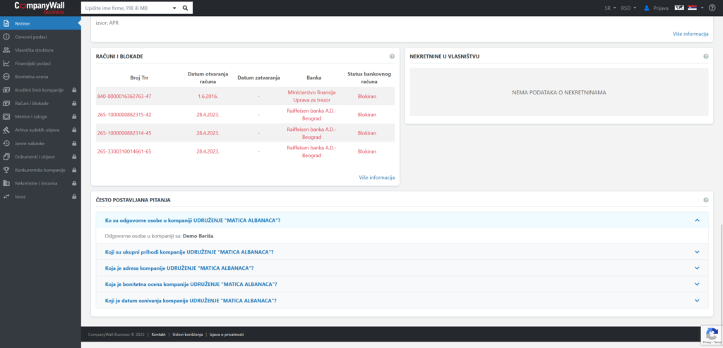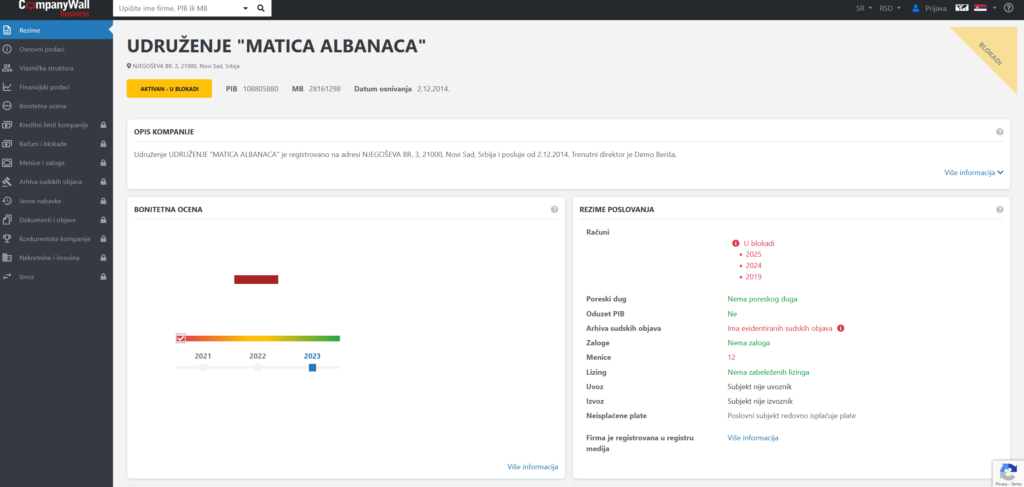 Sva četiri računa „Matice Albanaca“ su trenutno blokirana. Zapravo, „Matica Albanaca“ je u blokadi konstantno od 2019. godine.