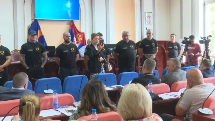 U toku sednice desila se nezapamćena situacija, kada su u skupštinsku salu ušli predstavnici privatnog obezbeđenja sa fantomkama na glavama.