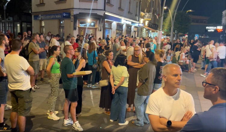 Pristalice SNS-a okupljale su se ispred ulaza u Gradsku upravu, a deo građana koji su krenuli na protest zborova, nije mogao tuda da prođe od kordona.
