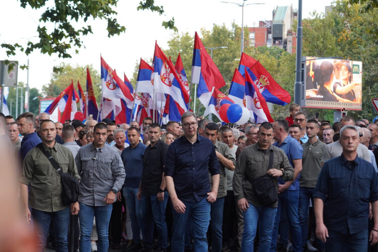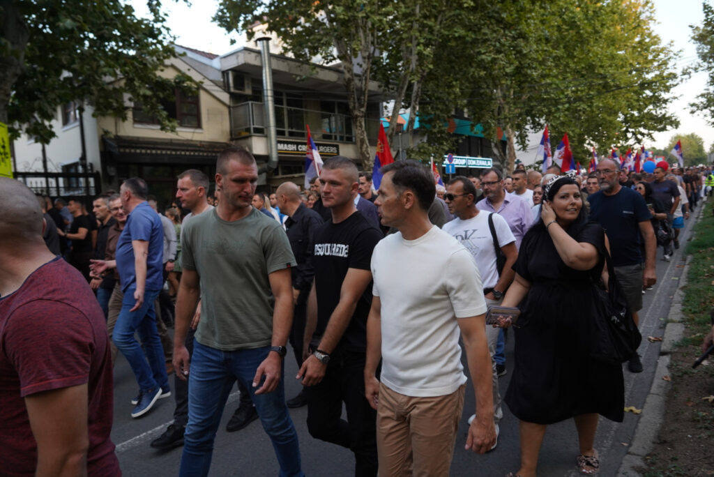 Okupljeni na čelu kolone nose veliki transparent „Srbija je večna dok su joj deca verna“ i „Voždovac protiv blokada“, prenela je televizija Informer.