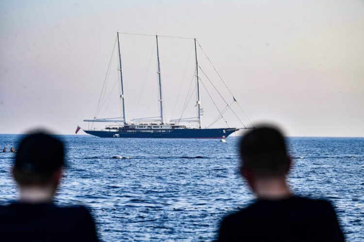 U blizini jahte postavljeno je obezbeđenje koje ne dozvoljava bliži pristup, dok je pored nje primetna i jahta u pratnji.