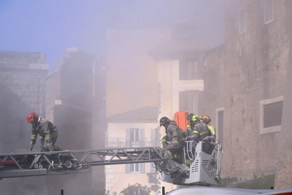 Vatrogasna brigada Rima poslala je tri operativna tima, dve merdevine i specijalne jedinice na mesto nesreće. Trojica radnika zarobljenih na vrhu kule evakuisana su kroz vrata pomoću vatrogasnih merdevina, dok je četvrti izvučen iz same konstrukcije.