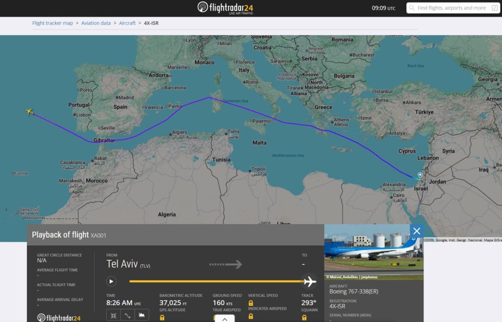 Let izraelskog državnog aviona „Krilo Siona“, takođe izgleda da izbegava vazdušni prostor Španije, koja je obećala da će pomoći u istrazi MKS-a.