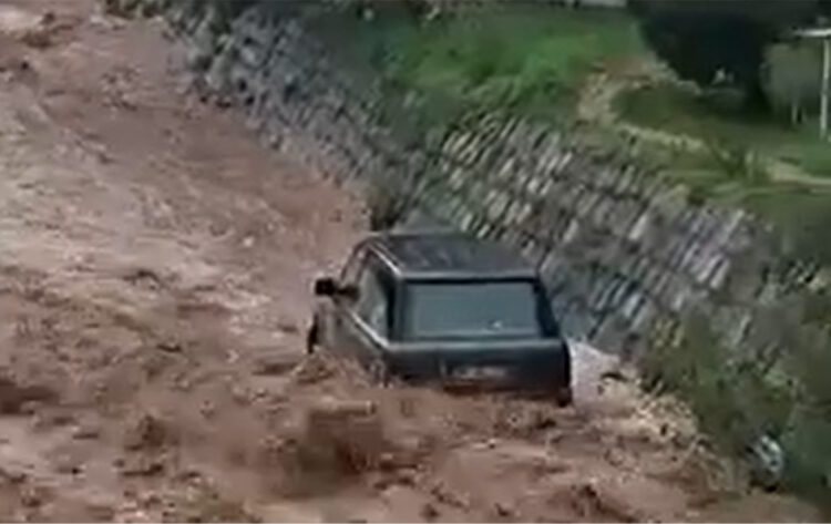 Na snimku se vidi kako nabujala voda nosi sve pred sobom.