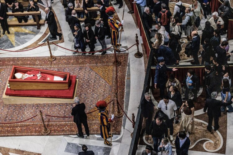 Nakon što je preminuo u 88. godini na Uskršnji ponedeljak, papino telo je preneto u baziliku svetog Petra u Vatikanu na trodnevni oproštajni obred.