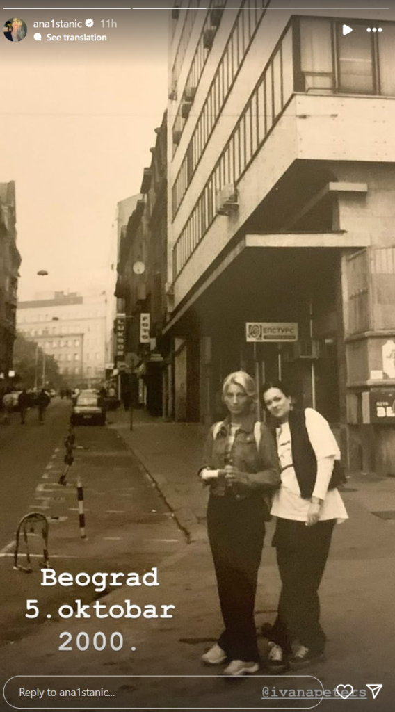 Ana je juče na 25. godišnjicu od pada režima Slobodana Miloševića podelila fotku koja je nastala tog dana na ulicama Beograda, a na kojoj je pozirala sa koleginicom Ivanom Peters.