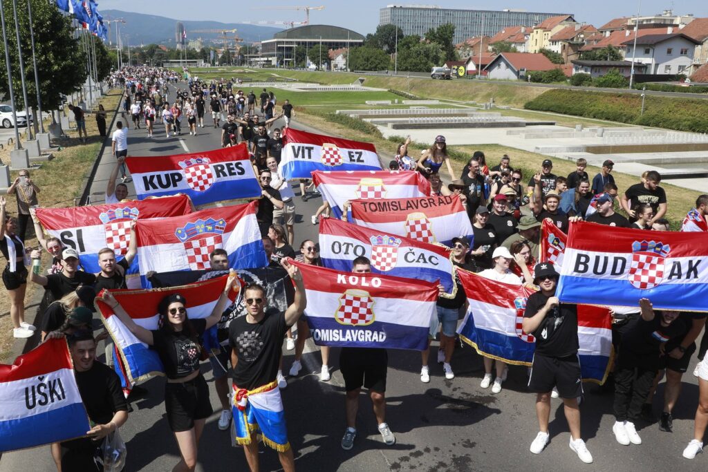 Ogromna publika je zagrmela; baklje su planule. Pevač, poznat kao Tompson (po oružju), poveo je svoje fanove u pozdrav iz Drugog svetskog rata koji je koristila ustaška vlast u Hrvatskoj, režim toliko brutalan da je šokirao čak i svoje nacističke saveznike.