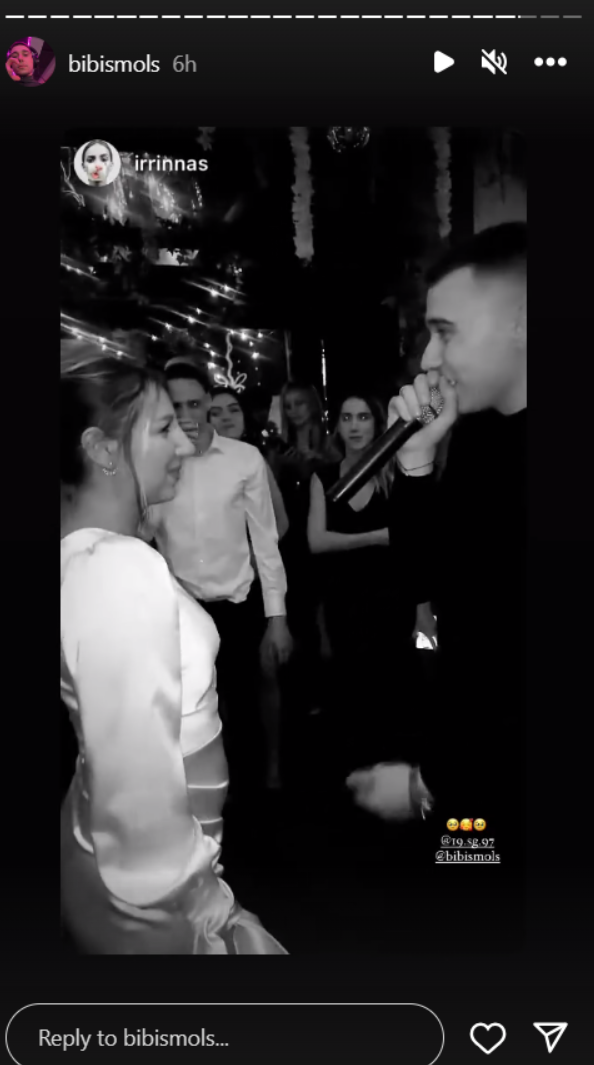 Tokom veselja reper se latio mikrofona, te je za svoju lepšu polovinu izveo deo njegovog najnovijeg dueta sa Amnom, „Naslovna“, zbog čega su mnogi zaključili da je Biba ovu pesmu posvetio svojoj izabranici.