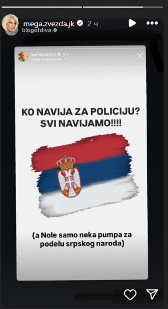 „Ko navija za policiju? Svi navijamo. A Nole samo neka pumpa za podelu srpskog naroda“, napisala je Jelena, aludirajući na to što je Novak Đoković pobedu nakon meča slavio simboličnim prikazivanjem pumpanja.