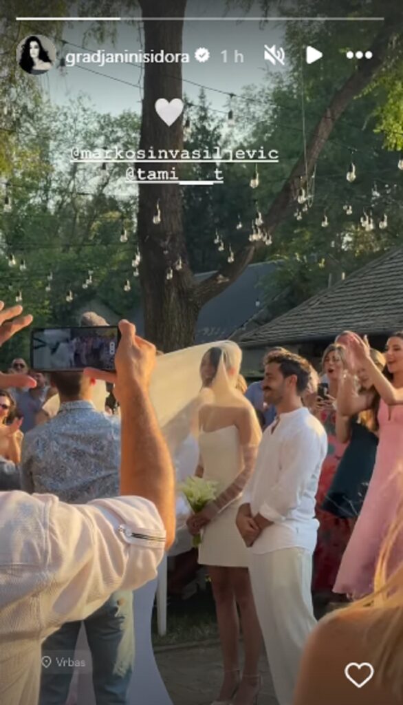 Mladenci su blistali nasmejan, a mlada je za ovu priliku odabrala kratku belu haljinu, a imala je i veo.