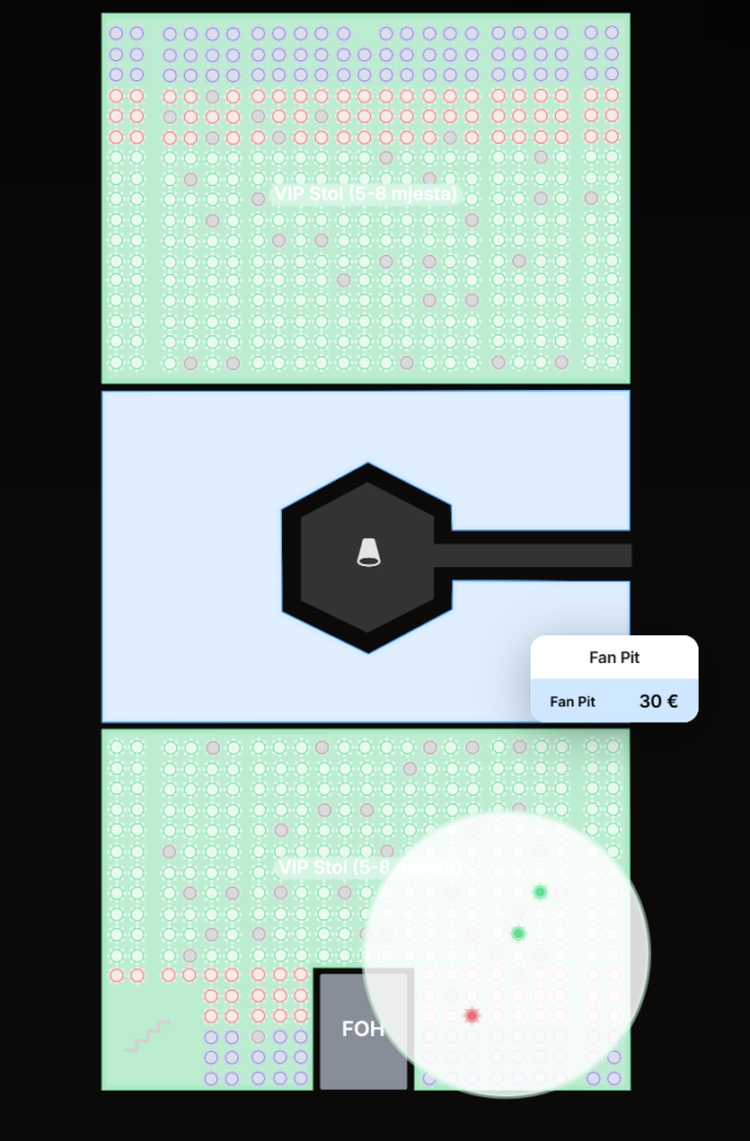 Prostor oko bine zove se Fan pit i on podrazumeva stajaća mesta, a ulaznica za jednu osobu u toj zoni je 30 evra. Nije poznato koliko mesta je rezervisano za ovaj deo arene, ali se na sajtu gde se prodaju karte može videti da ima još dostupnih ulaznica za ovaj reon.