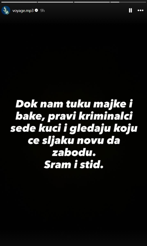 Na kraju, Vojaž je dodao: „Dok nam tuku majke i bake, pravi kriminalci sede kući i gledaju koju će šljaku novu da zabodu. Sram i stid“, zaključio je on.