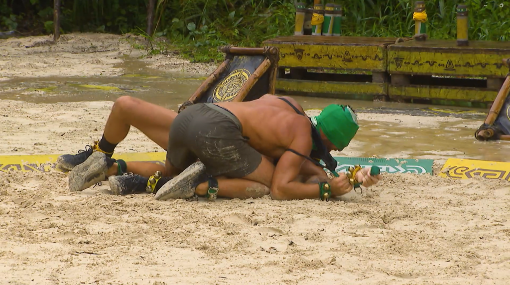 Prvi par bili su Luciano Plazibat iz žutog i Srđan Tešić iz zelenog plemena. Igra je počela veoma uzbudljivo, a onda je Srđan odlučio da prekrši pravila, te je svoju zastavu držao čvrsto u ruci, Luciana izgrebao po leđima i agresivno oborio na zemlju, zbog čega je odlučeno da poen dobije žuto pleme. Na kraju runde bodovi su otišli u korist zelenih, ali ova situacija postala je tema ne samo takmičara u Survivor-u nego i korisnika društvenih mreža.