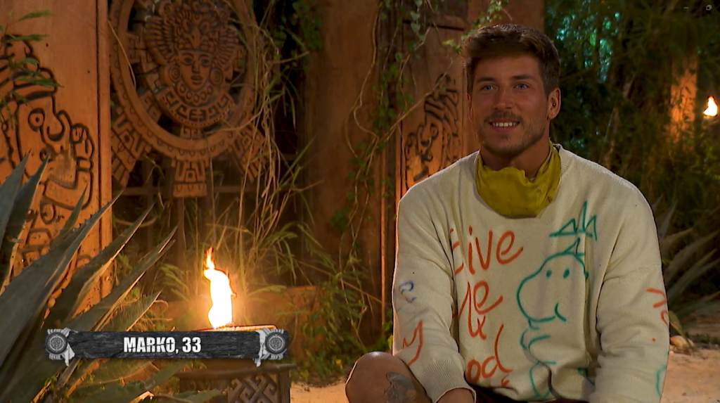 „Ne žalim ni za čim, svi četvoro koji su finalisti su najjači ove sezone, raduje me videti njih. Nadam se da sam bio dobar rival, ali šampioni u toj završnici imaju jaču glavu. Na neki način sam sam sebi srušio ove pločice, mirna glava je moja najveća lekcija u ovom Survivor-u. Mislim da sam se najviše promenio od svih i kada sam došao kući i gledao sebe na TV-u… Ovaj Survivor me je promenio na bolje… Lara je bila moj jedini saveznik, znao sam da je ona tu u svakom trenutku, nismo se družili previše, ali uvek sam mogao da računam na nju“, rekao je Marko voditelju, a zatim ugasio svoju baklju.
