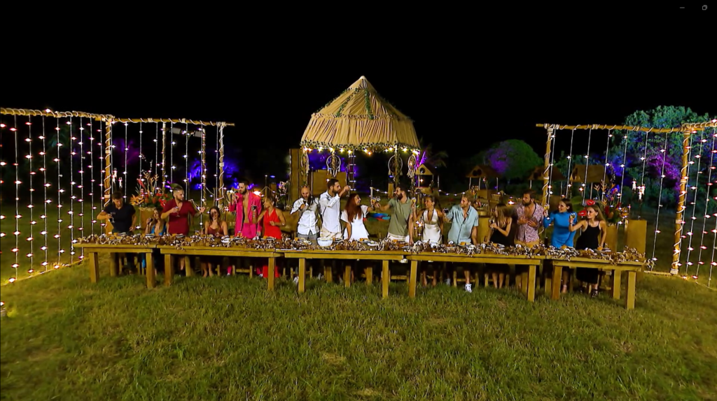 Takmičari su pili, pričali, upoznavali se, a jedna od glavnih tema je bila tajni imunitet i učešće Srđana Tešića u Survivor-u. Nakon što su se opustili, usledila je večera. Imali su priliku da jedu burek, pite, punjenu papriku, sarmu, i još mnogo toga. U jednom trenutku, pridružili su im se voditelji Bojan i Vlado: „Prošli ste jedan veliki deo puta, mnogo puta sam rekao da ste jedan od najzanimljivijih grupa koja je bila u Survivor-u. Aplaudirajte sami sebi za sve ono što vam se desilo. U ovom trenutku ne očekujte jedno ali, ali uvek ima jedno ali – ali gde je dezert?“, rekao je voditelj Bojan Perić, a onda su takmičarima žutog plemena dobili po kolač, a zeleni papir i olovku.