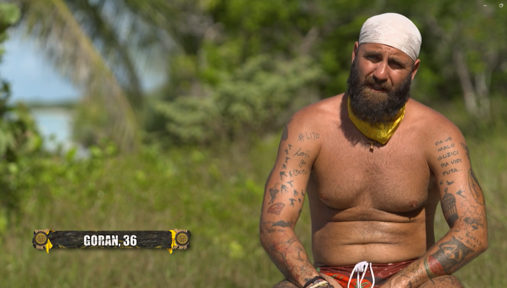 „Težak poraz danas. Ja nisam uspeo da pokažem ni 10 odsto sebe, danas sam od četiri puta, tri puta pobedio. Znam mnogo toga što pleme misli da ne znam“, rekao je Goran i istakao da je u Hrvatskom rijaliti programu „Farma“ pobedio 2016. godine tako što je napravio svoj klan koji ga je doveo do pobede.